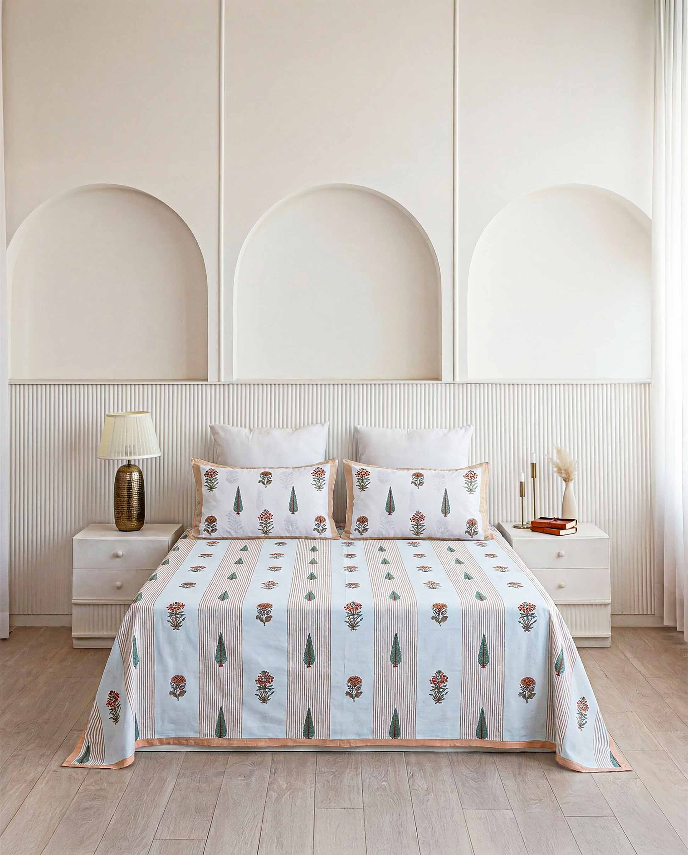 Experience the timeless artistry of Jaipur with our 100% premium cotton bedsheets, designed to offer a perfect blend of ethnic elegance and breathable comfort.